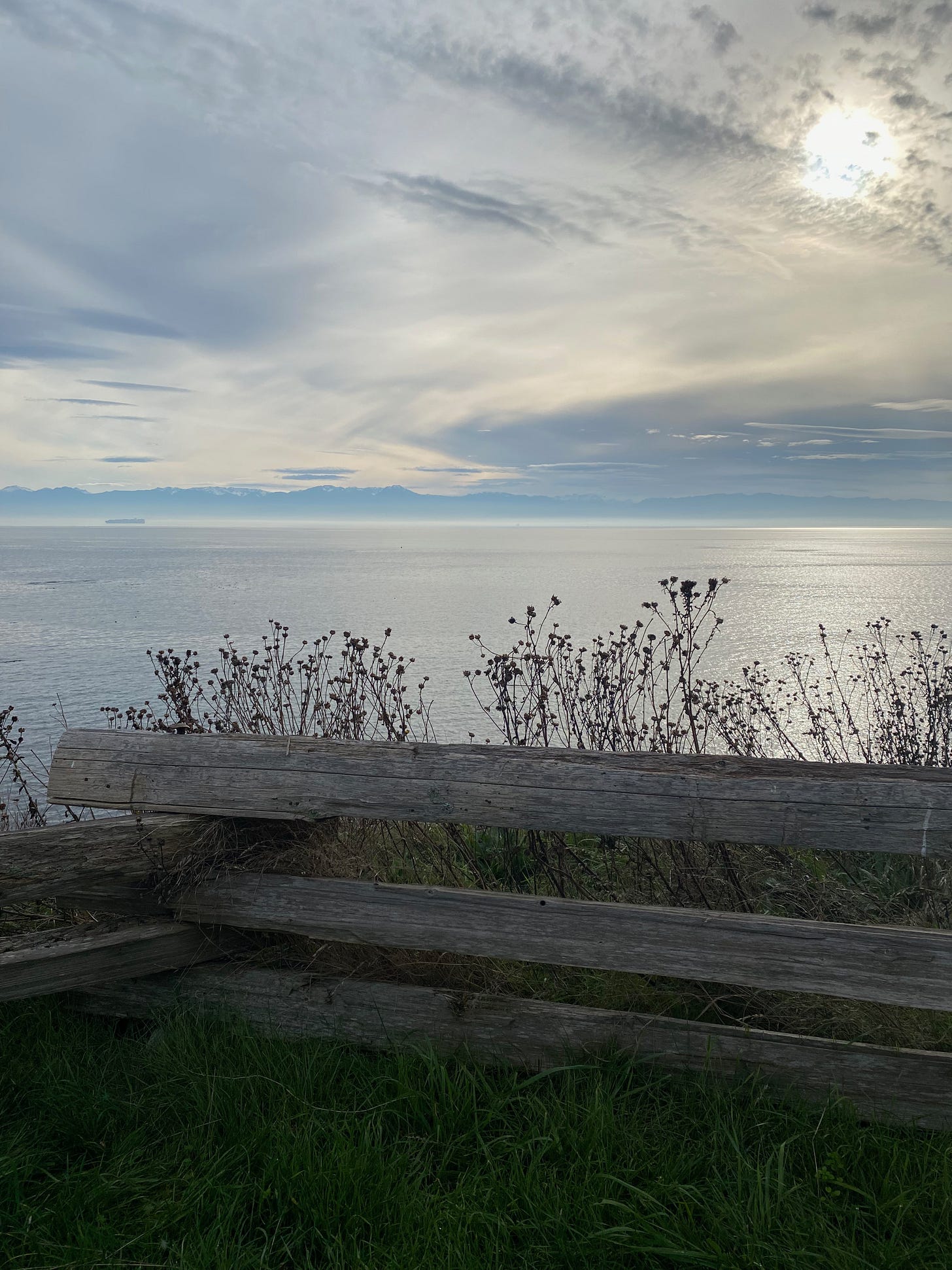 There’s an optical illusion I love that happens when we’re driving into the city, when we crest a hill that overlooks Victoria and the Olympic mountains suddenly loom large and dominate the horizon. Then as we drive down the hill they seem to shrink; they look smaller and the horizon fills with more sky, less mountains. “Look!” I tell anyone who’s with me in the car. “The mountains are getting smaller!" It truly looks like they are.